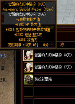 觉醒的太阳神装扮(3天) 商城出售