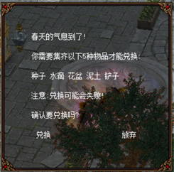 集齐以上5种物品,至科洛斯城 坐标:X:154 Y:223 NPC:春之气息活动 兑换